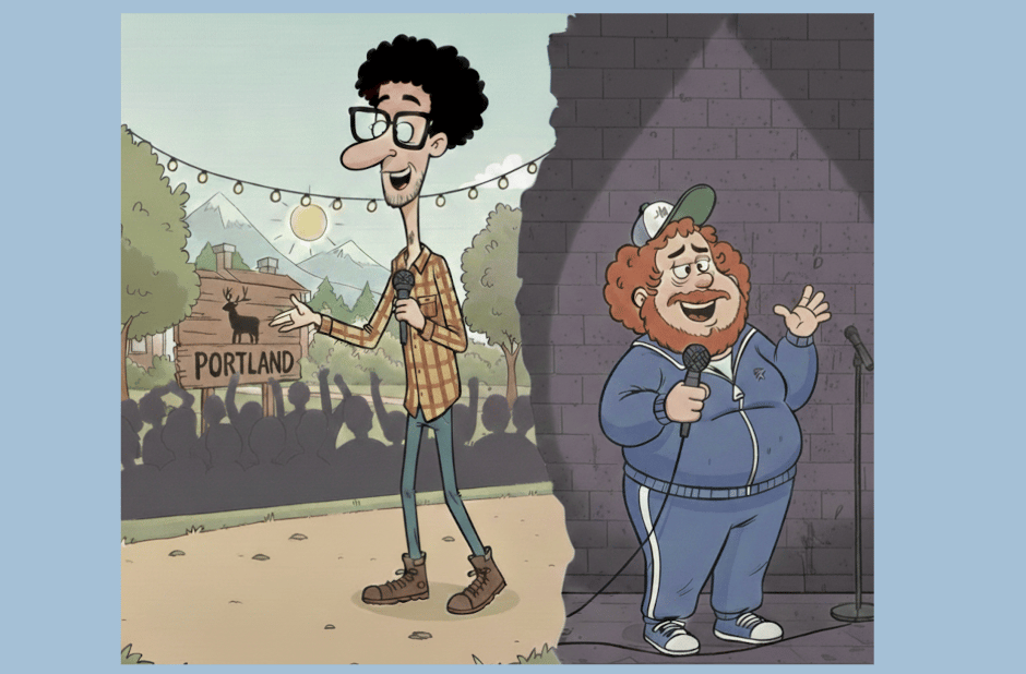 Portland-based stand-up comic Brent Lowrey tried an unconventional way of breaking out of his local comedy bubble: switching lives with another comedian (Adam Flick) in Philadelphia. The two comics knew each other, which made it easier to swap apartments and cars.